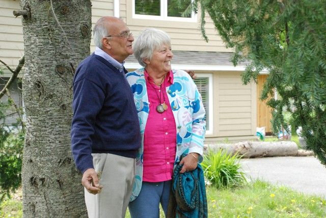 (左:ミカエルさんの工房にあるお庭)(右:ミカエルさんとマリーさん)